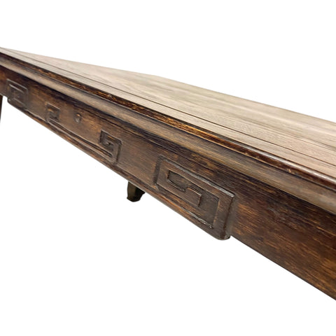 De bonsai tafel ‘Chūrin’ is een elegante tafel in klassieke Chinese stijl, perfect voor het presenteren van bonsai of suiseki. Het ontwerp is gebaseerd op traditioneel Ming-meubilair, herkenbaar aan de rechte poten met gebogen voetstukken en het verfijnde geometrische snijwerk langs de randen.