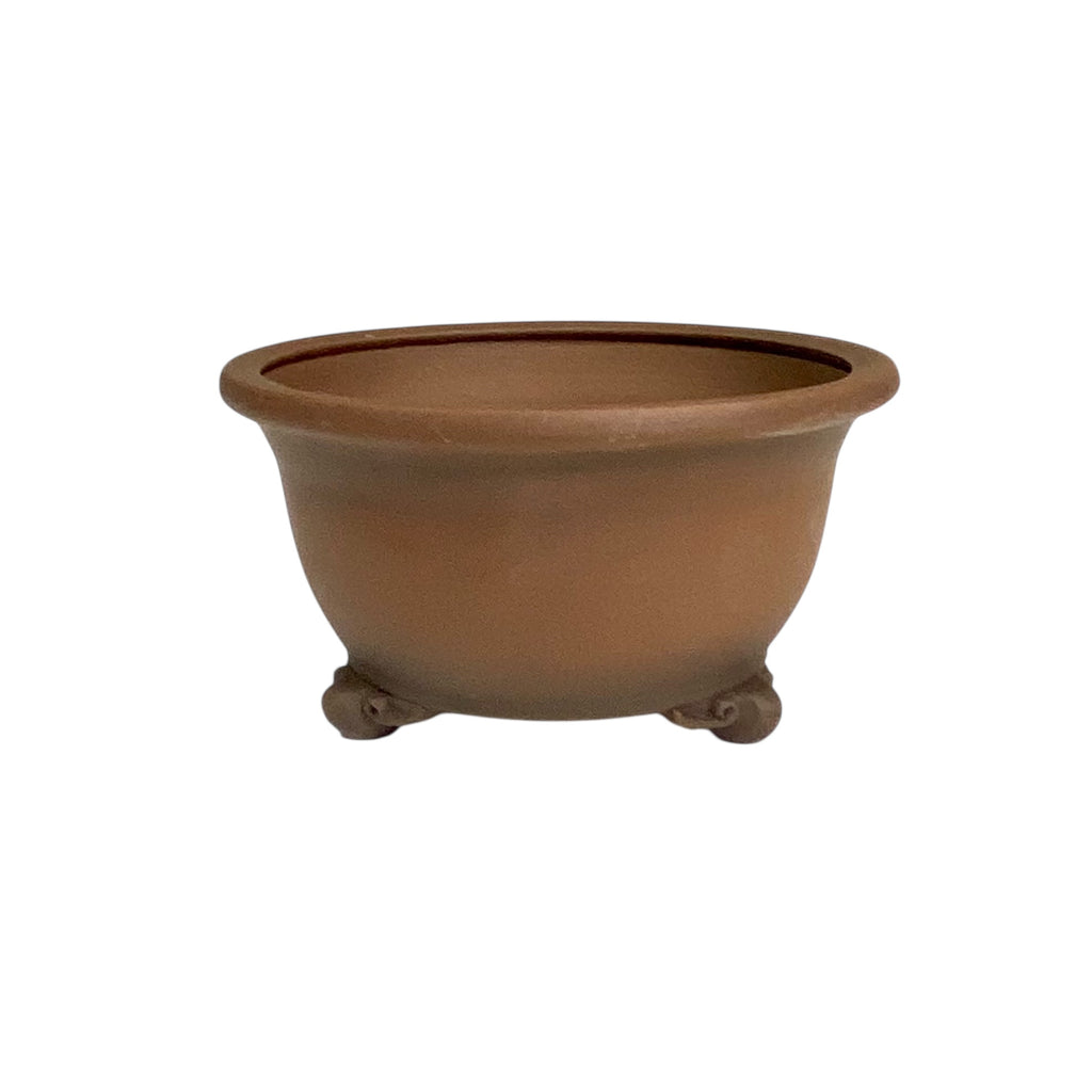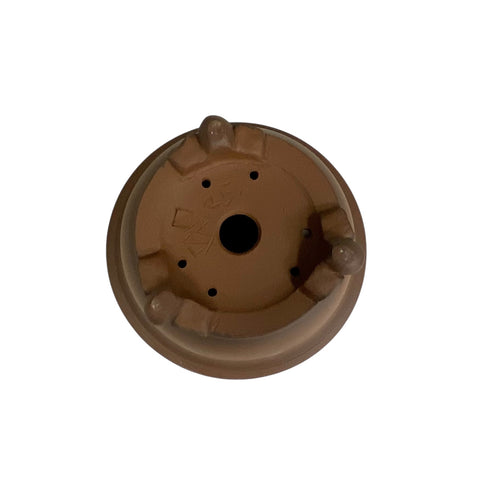 Prachtige ronde cascade bonsaischaal met elegante voetjes van Kai Sperling. De schaal is ongeglazuurd en heeft een bruine kleur. Het formaat is 16 x 9 cm. De schaal is vorstbestendig.