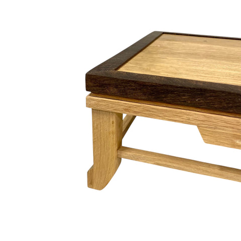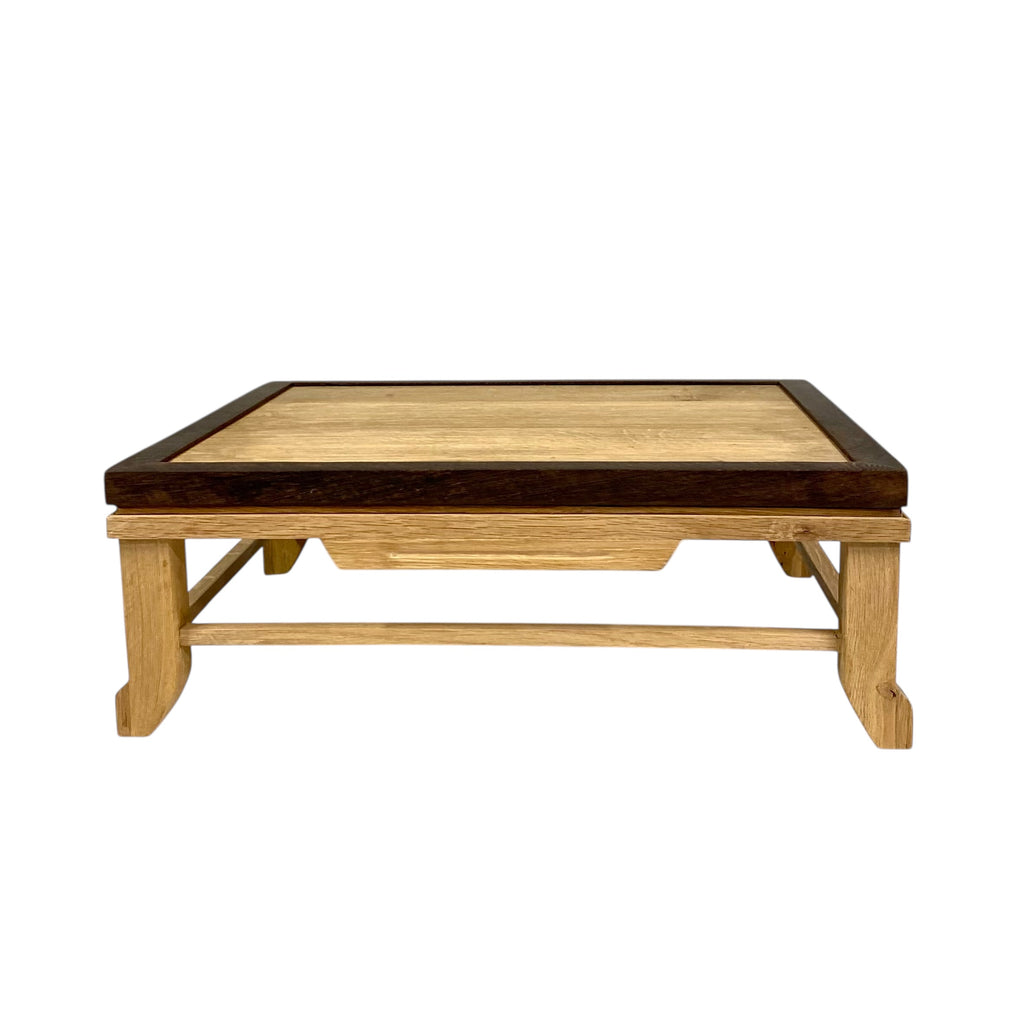 De bonsaitafel ‘Kuro-Edge’ combineert traditionele ambacht met een modern Japans gevoel. De donkere rand vormt een elegant contrast met het lichte eiken blad en laat je bonsai extra opvallen. De tafel is gemaakt van oud eikenhout, afkomstig van hergebruikte meubelen. Aan de onderzijde is zelfs te zien dat het blad ooit deel uitmaakte van een keukendeurtje, wat dit exemplaar zijn eigen verhaal geeft.