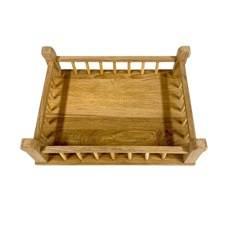 Deze tafel is volledig handgemaakt van oud eikenhout, afkomstig van hergebruikte meubelen. De lichte kleur en natuurlijke nerf van het hout versterken de serene uitstraling van dit ontwerp. Elk detail is met zorg afgewerkt: de verbindingen zijn gedeuveld en verlijmd met watervaste witte houtlijm. Geen spijker of schroef is gebruikt.