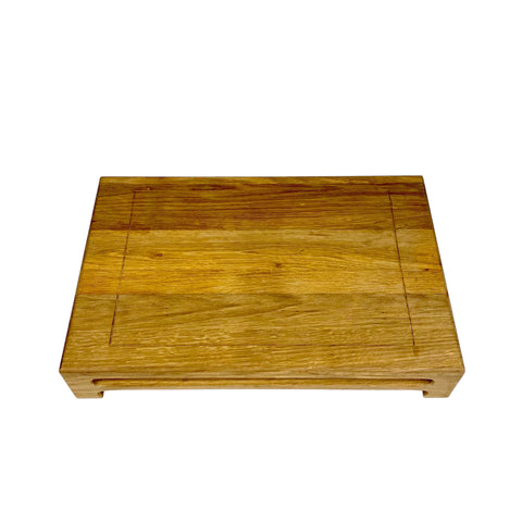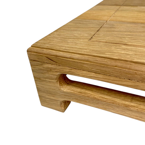 De moderne vorm met open lijn onderaan geeft een luchtig en Japans karakter. Elke tafel is puur handwerk: gemaakt met de bovenfrees voor subtiele randen en met deuvelverbindingen van eiken pinnen. Geen spijker of schroef komt eraan te pas. Alles is verlijmd met watervaste witte houtlijm.