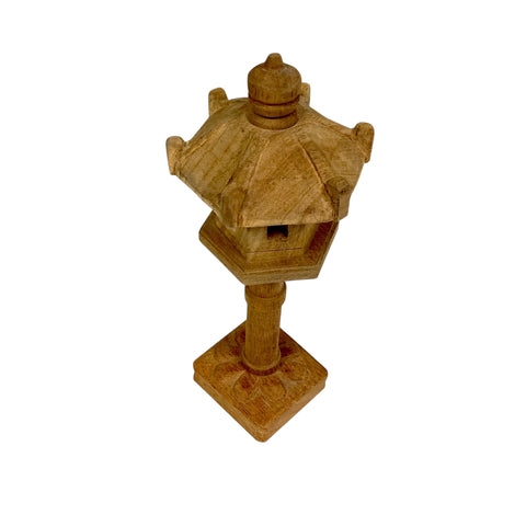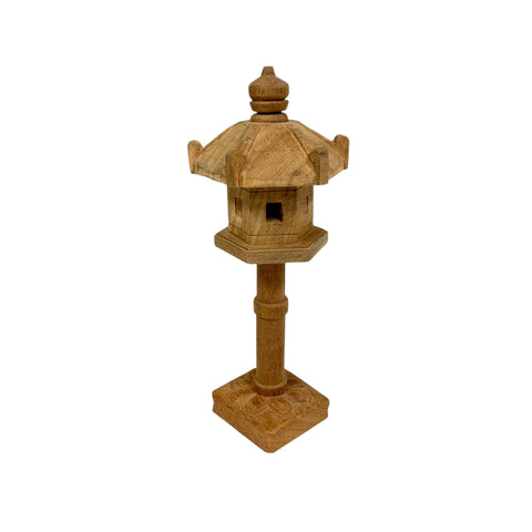De Japanse lantaarn ‘Kasuga’ is een stijlvolle miniatuurversie van de bekende stenen tuinlantaarns uit Japan. Deze houten variant is met de hand gesneden en heeft verfijnde details zoals het zeshoekige dak en het kleine venstertje in het midden.